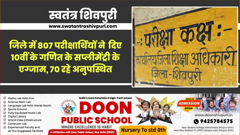 READ MOREशिवपुरी। माध्यमिक शिक्षा मंडल द्वारा जारी दसवीं की पूरक परीक्षाओं के क्रम में बुधवार को गणित विषय का प्रश्नपत्र आठ