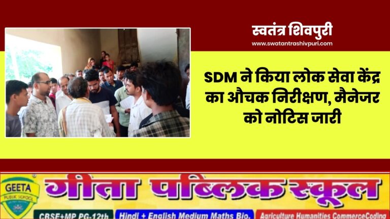 READ MOREशिवपुरी। अनुविभागीय दंडाधिकारी आईएएस अरविंद शाह द्वारा लोक सेवा केंद्र पिछोर का औचक निरीक्षण 19 जुलाई बुधवार को किया गया।