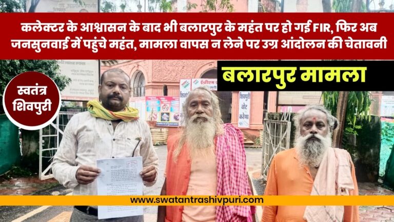 READ MOREशिवपुरी। आज जनसुनवाई में पहुंचे मां बलारी के महंत प्रयाग भारती और उसने साथियों ने कलेक्टर से शिकायत करते हुए