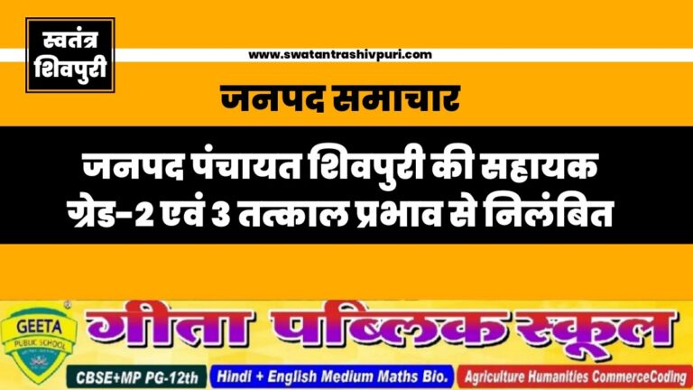जनपद पंचायत शिवपुरी की सहायक ग्रेड-2 एवं 3 तत्काल प्रभाव से निलंबित