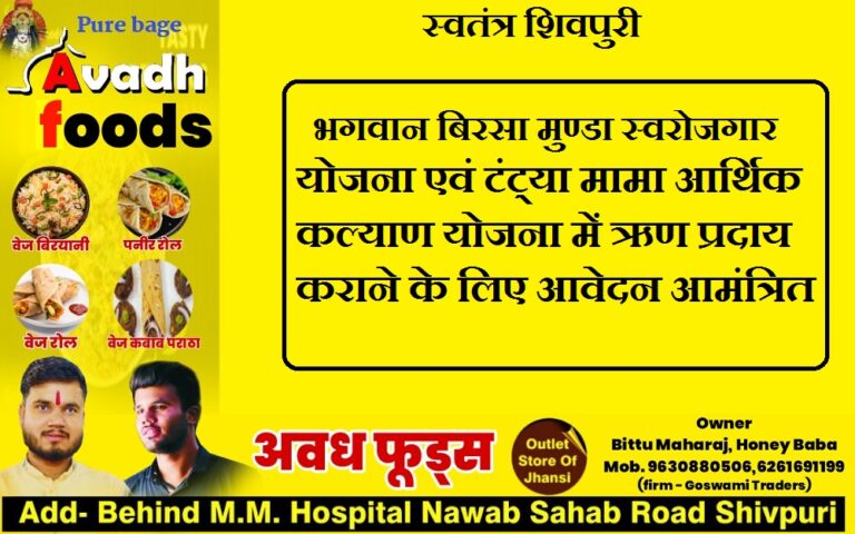 READ MOREशिवपुरी। म.प्र.आदिवासी वित्त एवं विकास निगम भोपाल द्वारा संचालित भगवान बिरसा मुण्डा स्वरोजगार योजना में 15 इकाइयों एवं टंट्या मामा