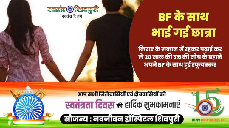 शिवपुरी। एक 20 साल की छात्रा शौच जाने के बहाने के अपने प्रेमी के साथ घर से भाग गई। जिसकरी