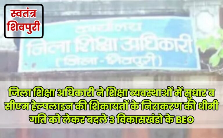 READ MOREशिवपुरी। खबर शिवपुरी जिले से है जहां जिला शिक्षा अधिकारी जिला शिवपुरी द्वारा जिले की शिक्षा व्यवस्थाओं को सुचारू व