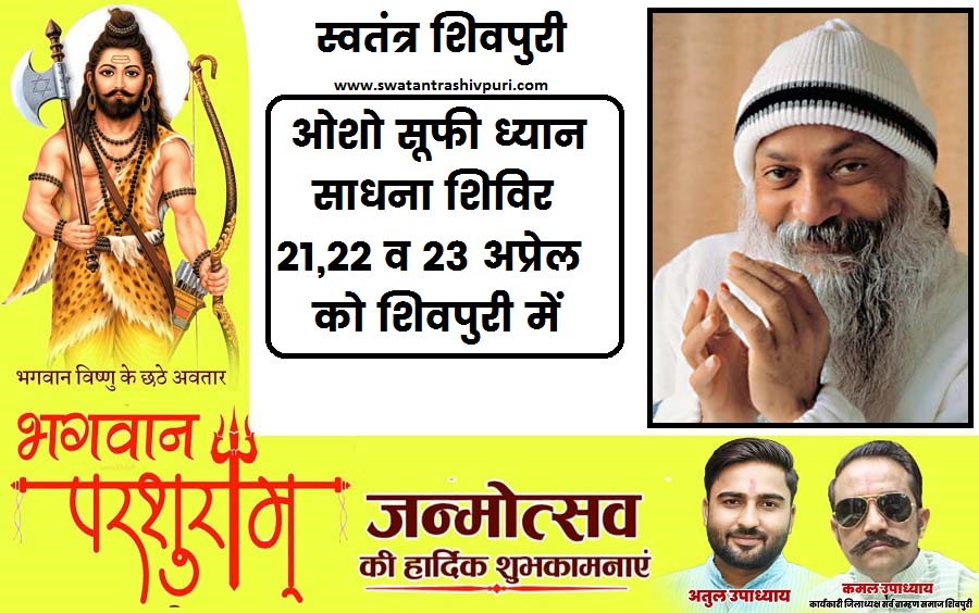 ओशो सूफी ध्यान साधना शिविर 21,22 व 23 अप्रेल को शिवपुरी में
