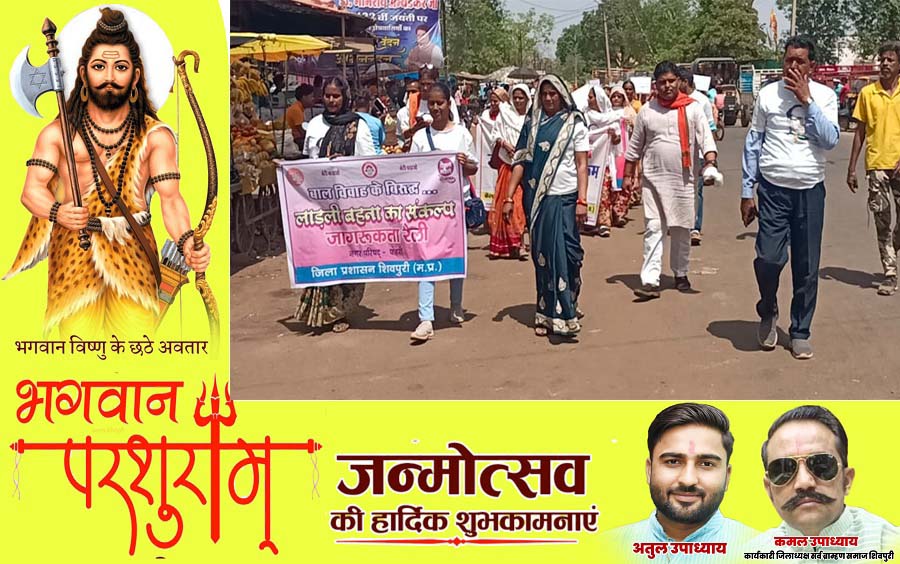 पोहरी। खबर पोहरी अनुभाग की हैं जहा सरकार की महत्वाकांक्षी लाडली बहना योजना को लेकर महिला एवं बाल विकास विभाग द्वारा नगर में जागरूकता रैली का आयोजन किया। रैली का आयोजन महिला बाल विकास विभाग के कार्यालय से शुरू हुई जो नगर के प्रमुख मार्गों से होते हुए बस स्टैंड, जयस्तम्भ चोराहा,ब्लॉक कॉलोनी होते हुए वापिस कार्यालय पर पहुची।