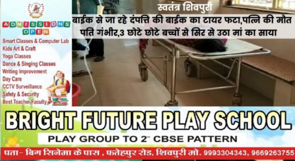 बाईक से जा रहे दंपत्ति की बाईक का टायर फटा,पत्नि की मौत ,पति गंभीर,3 छोटे छोटे बच्चों से सिर से उठा मां का साया