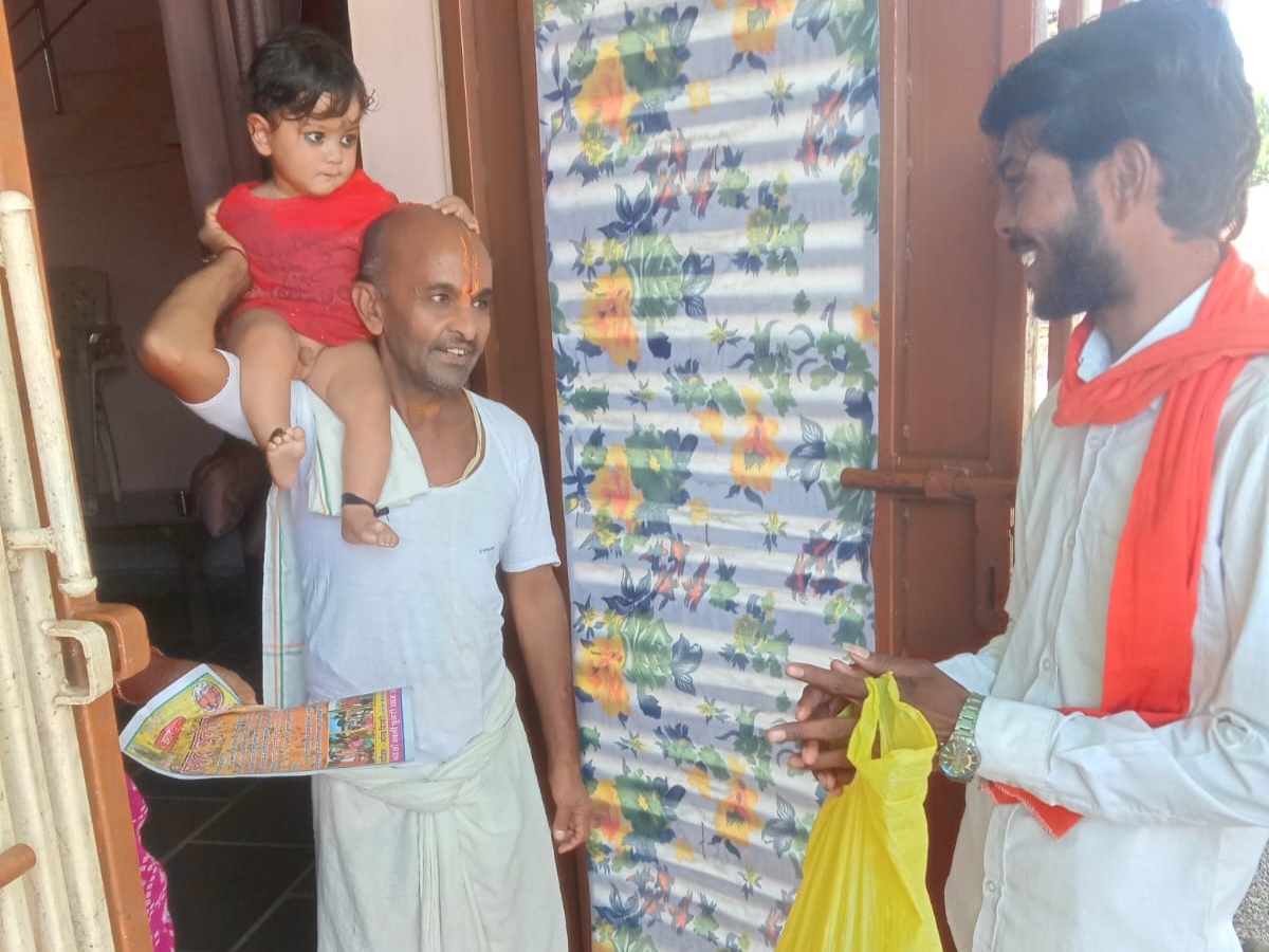 बैराड़ में चुनरी यात्रा को लेकर बजरंग दल कार्यकर्ताओं ने घर घर जाकर दिया आमंत्रण