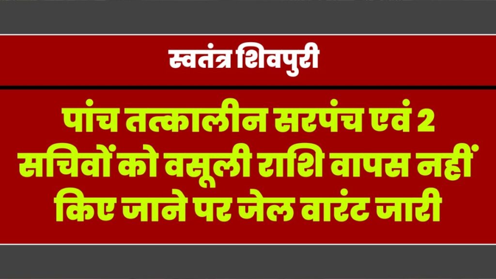 शिवपुरी। जिला पंचायत के मुख्य कार्यपालन अधिकारी उमराव सिंह मरावी द्वारा जिले की ग्राम पंचायत के 5 तत्कालीन सरपंचों एवं 2 सचिवों को वसूली राशि वापस नहीं किए जाने के कारण जेल वारंट जारी किए है।