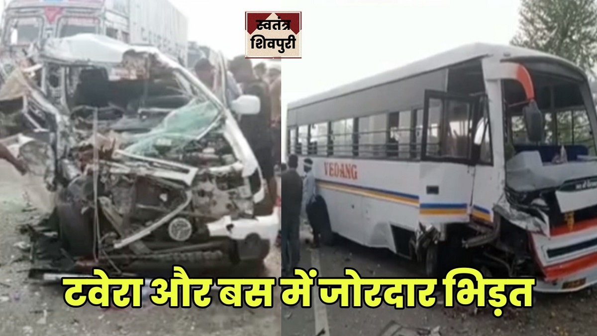 बता दें कि फोरलेन हाइवे पर रिपेरिंग का कार्य चल रहा था। इसी के चलते हाइवे की एक पट्टी को बंद कर दूसरी पट्टी से ट्रैफिक को निकाला जा रहा था। बुधवार सुबह सात बजे एक बस करैरा से खनियाधाना के लिए रवाना हुई थी। यह बस अपने दिशा में चल रही इसी दौरान अमोला कालोनी-सिल्लारपुर गांव के बीच हाइवे की एक पट्टी बंद होने की वजह से सामने से आ रही टवेरा (GJ15CF9093) और बस (MP33ZC3825) में भिड़ंत हो गई।