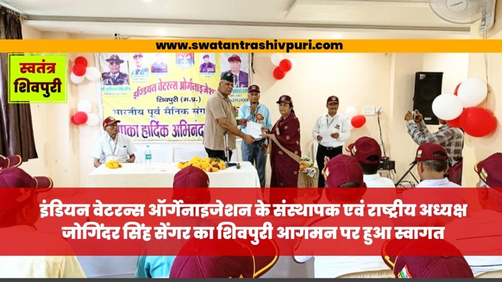 इंडियन वेटरन्स ऑर्गेनाइजेशन के संस्थापक एवं राष्ट्रीय अध्यक्ष जोगिंदर सिंह के शिवपुरी आगमन पर हुआ जोरदार स्वागत
