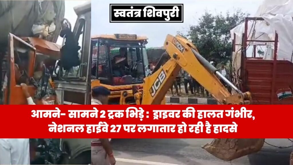 आमने-सामने से दो ट्रक भिड़े: ड्राइवर की हालत गंभीर,नेशनल हाईवे 27 पर लगातार हो रहे हादसे