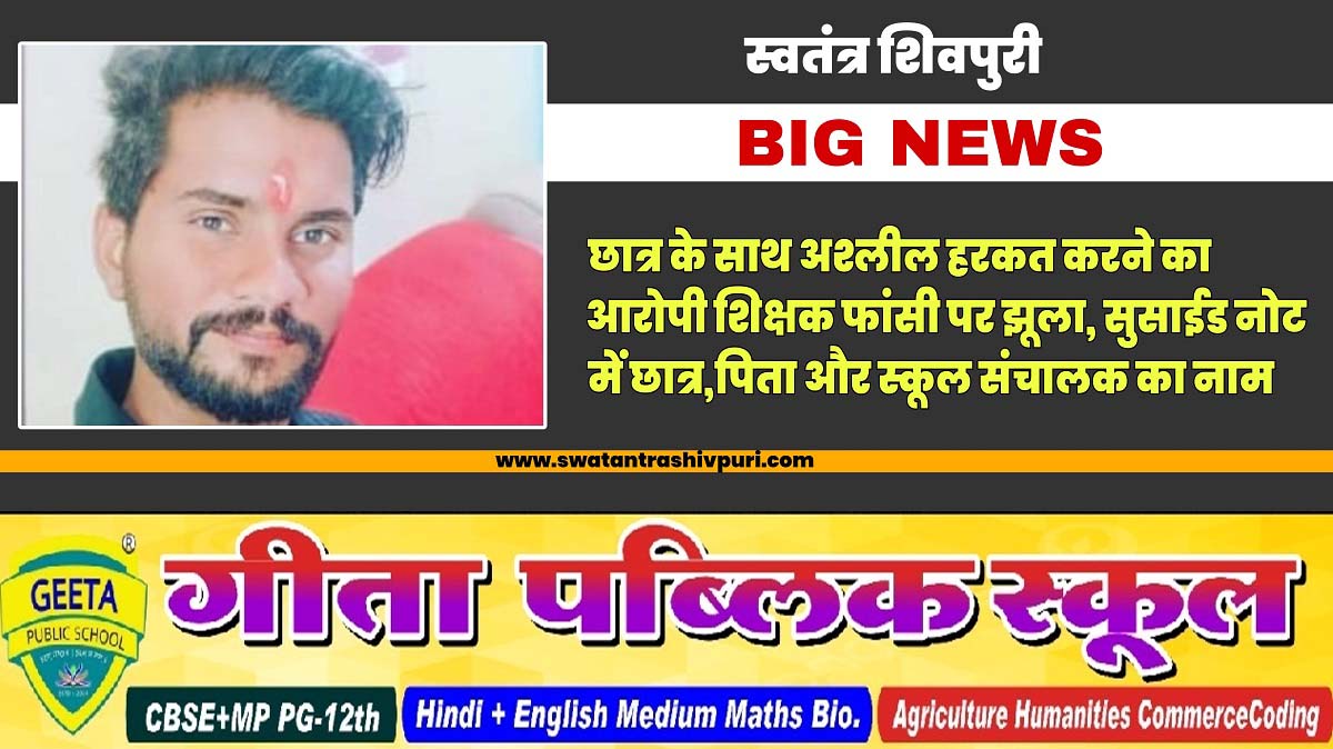 बडी खबर: छात्र के साथ अश्लील हरकत करने का आरोपी शिक्षक फांसी पर झूला, सुसाईड नोट में छात्र,पिता और SCHOOL संचालक का नाम