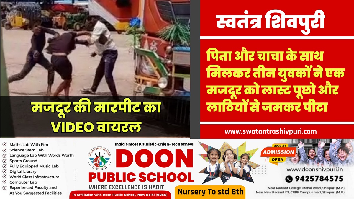 मजदूर की मारपीट का VIDEO वायरल : पिता और चाचा के साथ मिलकर तीन युवकों ने एक मजदूर को लात, घूंसों और लाठियों से जमकर पीटा