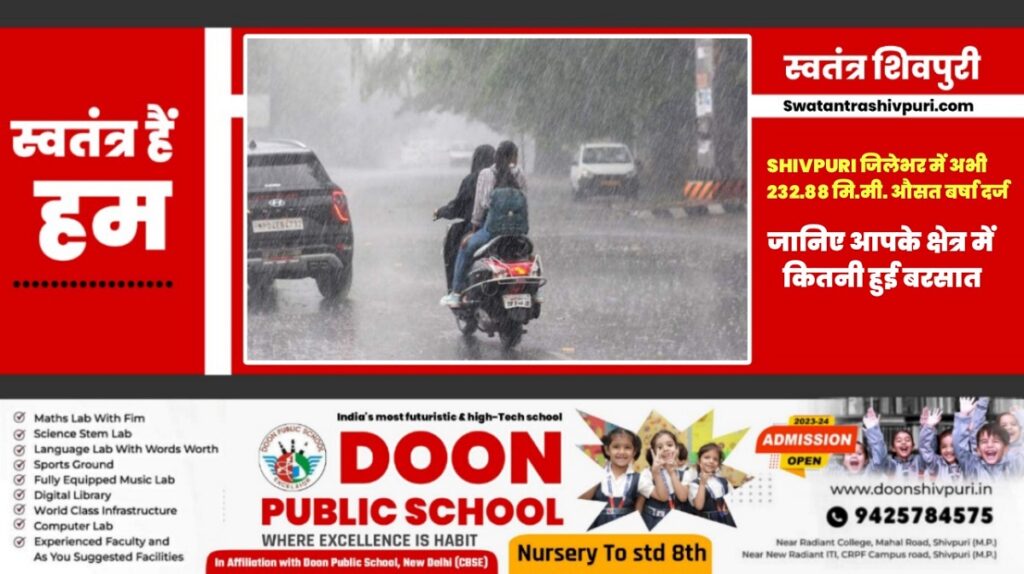 SHIVPURI जिले में अभी तक 232.88 मि.मी. औसत वर्षा दर्ज: जानिए आपके क्षेत्र में कितनी हुई बरसात