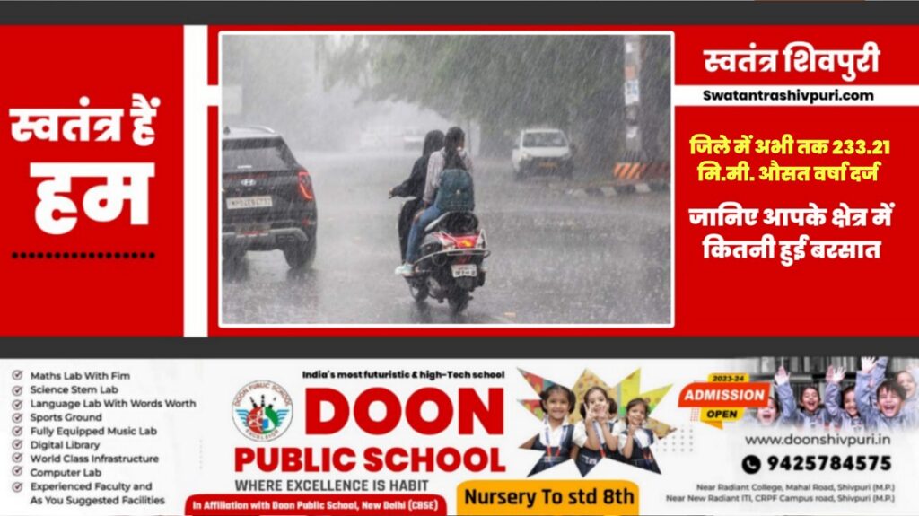 जिले में अभी तक 233.21 मि.मी. औसत वर्षा दर्ज, जानिए आपके क्षेत्र में कितनी हुई बरसात