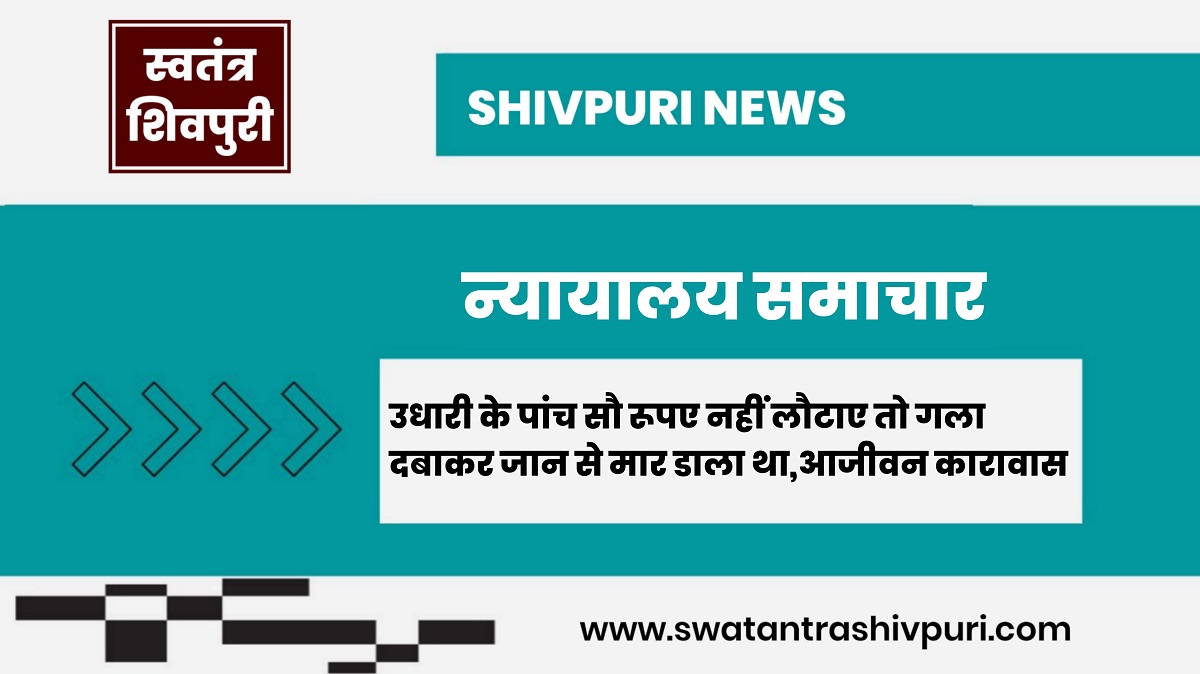 शिवपुरी। गला दबाकर हत्या करने के मामले में सेशन न्यायाधीश दीपक गुप्ता ने गला दबाकर युवक की हत्या करने वाले को आरोपी को आजीवन सश्रम कारावास एवं एक हजार रुपए के अर्थदंड से दंडित किया है। अभियोजन की ओर से पैरवी लोक अभियोजक धीरज जामदार ने की।