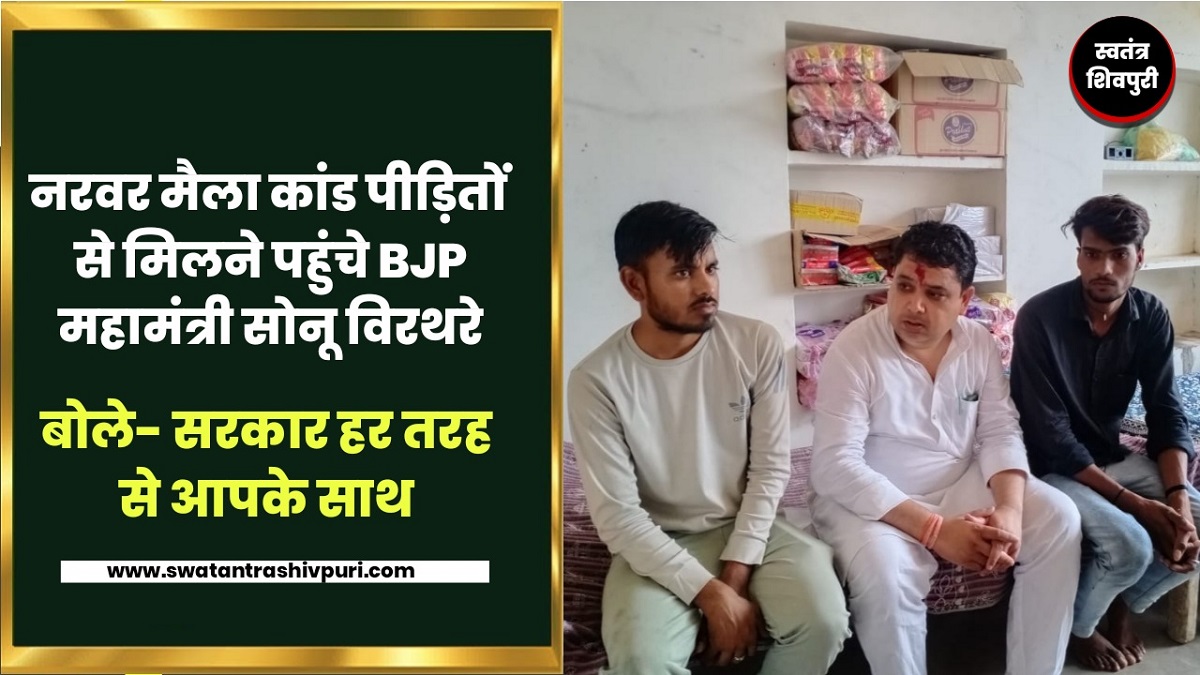 नरवर मैला कांड पीड़ितों से मिलने पहुंचे महामंत्री सोनू बिरथरे : बोले- कहा सरकार हर तरह से आपके साथ है