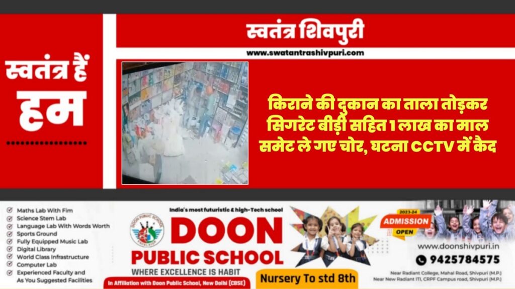 किराने की दुकान का ताला तोडकर सिगरेट, बीडी सहित 1 लाख का माल समेट ले गए चोर, घटना CCTV में कैद
