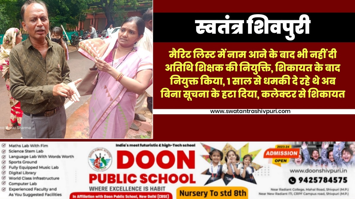 मैरिट लिस्ट में नाम आने के बाद भी नहीं दी अथिति शिक्षक की नियुक्ति, शिकायत के बाद नियुक्त किया, 1 साल से धमकी दे रहे थे, अब बिना सूचना के हटा दिया, कलेक्टर से शिकायत