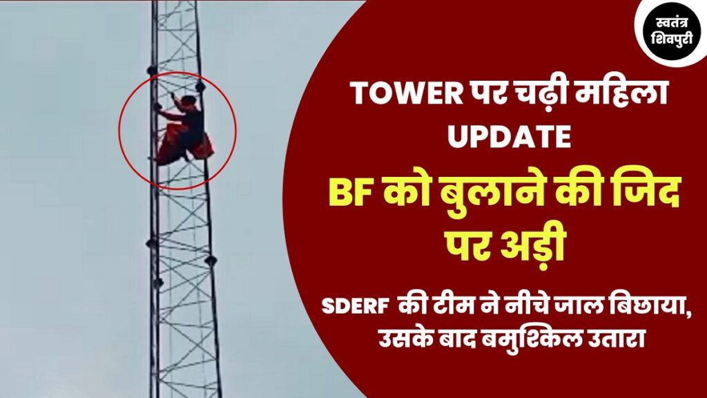 TOWER पर चढी महिला UPDATE : BF को बुलाने की जिद पर अडी, SDERF की टीम ने नीचे जाल बिछाया, उसके बाद बमुश्किल उतारा