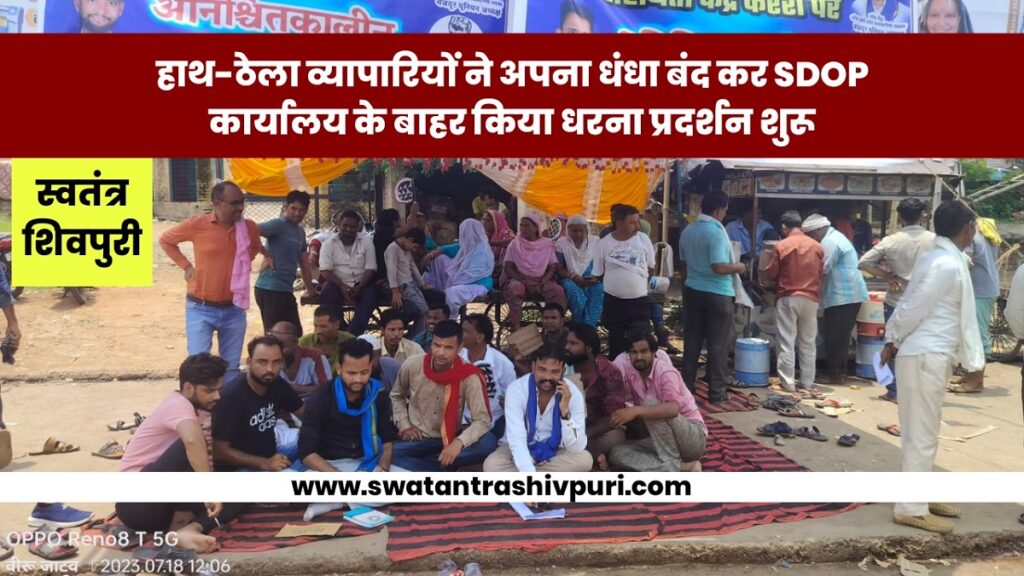 हाथ ठेला व्यापारीयों ने अपना धंधा बंद कर SDOP कार्यालय के बाहर किया धरना शुरू