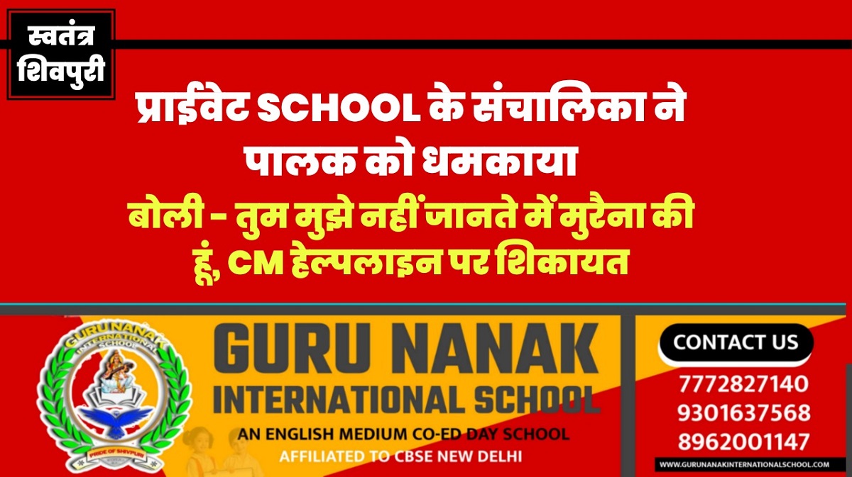 प्रायवेट स्कूल की संचालिका ने पालक को धमकाया,बोली तुम मुझे नहीं जानते में मुरैना की हूं,CM HELPLINE पर शिकायत