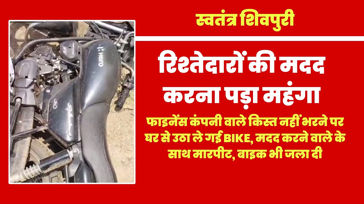 रिश्तेदारों की मदद करना पड़ा मंहगा: फाइनेंस कंपनी बाले किस्त नहीं भरने पर घर से उठा ले गए BIKE, मदद करने बाले के साथ मारपीट, BIKE भी जला दी
