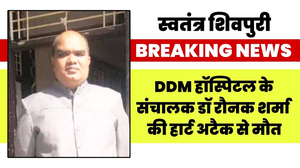 शिवपुरी। अभी अभी खबर जिला चिकित्सालय से आ रही है। जहां काली माता मंदिर के पास प्रायवेट हॉस्पीटल डीडीएम के संचालक डॉ रौनक शर्मा की आज हार्ड अटैक से मौत हो गई है। इस मामले की सूचना जैसे ही साथी डॉ को मिली डॉ में शोक की लहर दौड गई है।