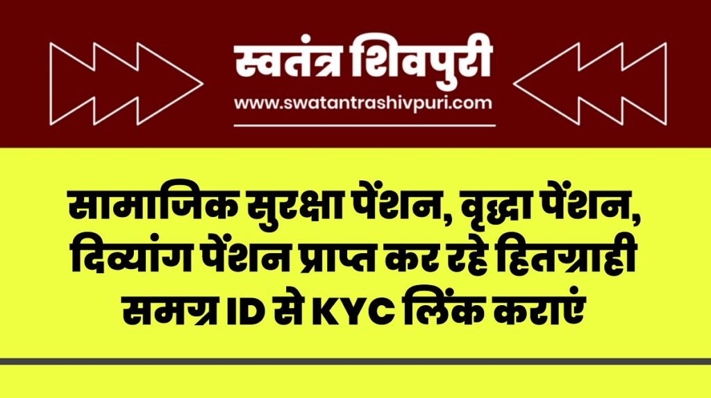 शिवपुरी। शासन नियमानुसार जिले के समस्त सामाजिक सुरक्षा पेंशन प्राप्त कर रहे हितग्राही अपने आधारकार्ड को समग्र आईडी से लिंक कराकर ई- केवाईसी कराए। जिससे शासन की योजनाओं से मिलने वाला लाभ संबंधित को निरंतर रूप से मिलता रहे।