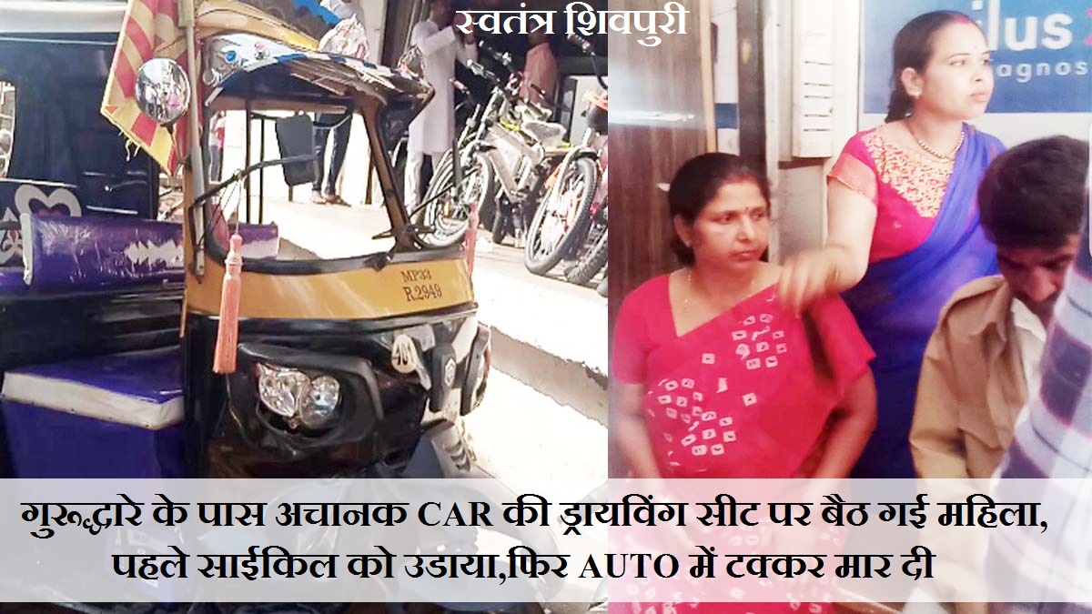 गुरूद्धारे के पास अचानक CAR की ड्रायविंग सीट पर बैठ गई महिला, पहले साईकिल को उडाया,फिर AUTO में टक्कर मार दी