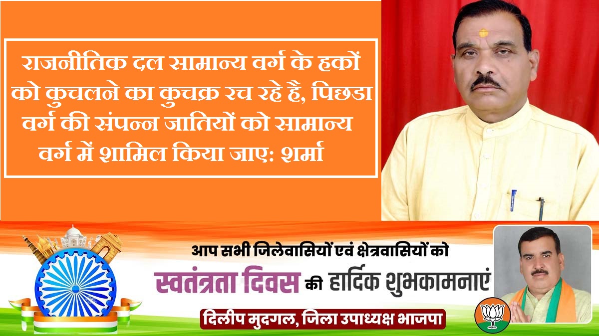 राजनीतिक दल सामान्य वर्ग के हकों को कुचलने का कुचक्र रच रहे है,पिछडा वर्ग की संपन्न जातियों को सामान्य वर्ग में शामिल किया जाए: शर्मा