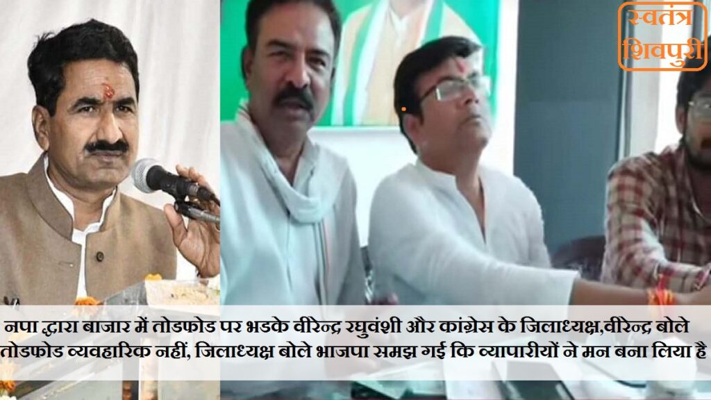 नपा द्धारा बाजार में तोडफोड पर भडके वीरेन्द्र रघुवंशी और कांग्रेस के जिलाध्यक्ष,वीरेन्द्र बोले तोडफोड व्यवहारिक नहीं, जिलाध्यक्ष बोले भाजपा समझ गई कि व्यापारीयों ने मन बना लिया है