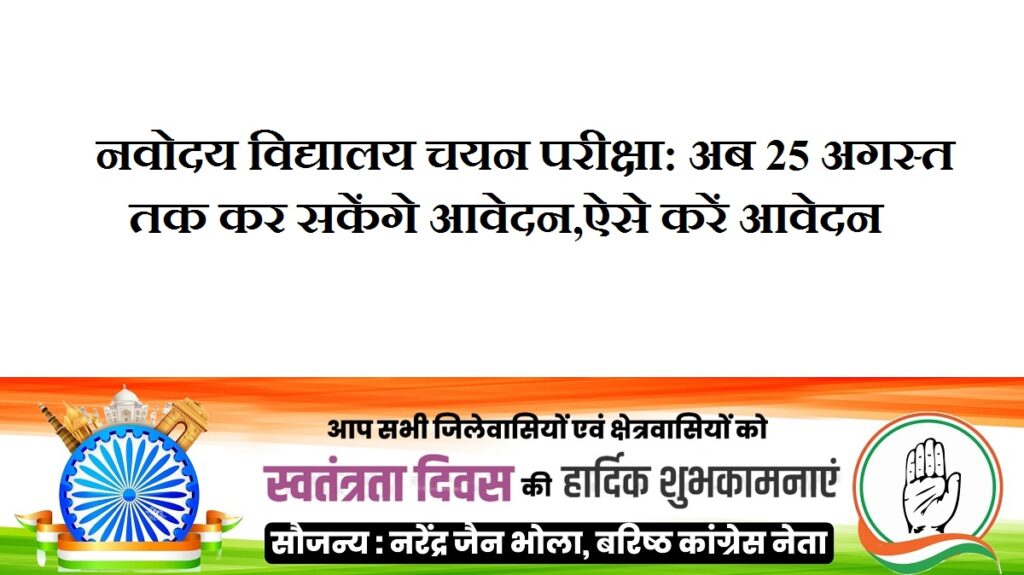 नवोदय विद्यालय चयन परीक्षा: अब 25 अगस्त तक कर सकेंगे आवेदन,ऐसे करें आवेदन