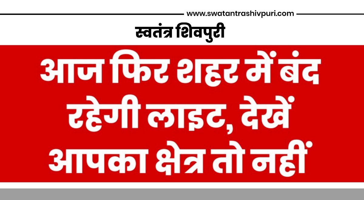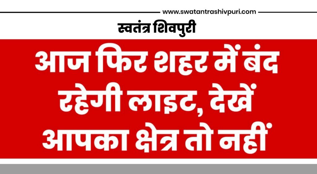 शिवपुरी। अति आवश्यक लाइन रखरखाव कार्य किए जाने के कारण 11 के.वी. मनियर फीडर पर 4 सितंबर को प्रातः 10 बजे से 3 बजे तक विद्युत प्रदाय बंद रहेगा।