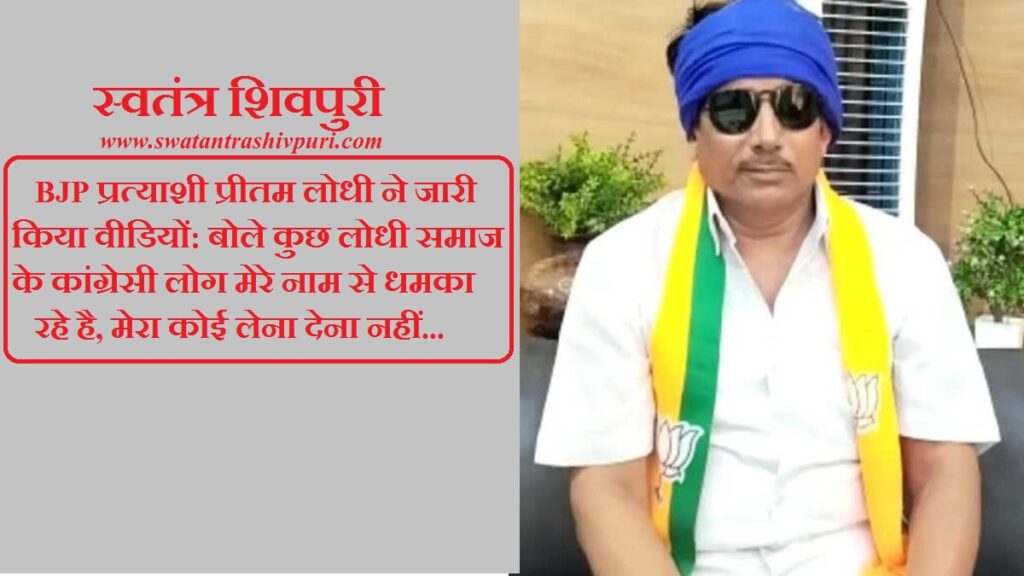 BJP प्रत्याशी प्रीतम लोधी ने जारी किया वीडियों: बोले कुछ लोधी समाज के कांग्रेसी लोग मेरे नाम से धमका रहे है,मेरा कोई लेना देना नहीं