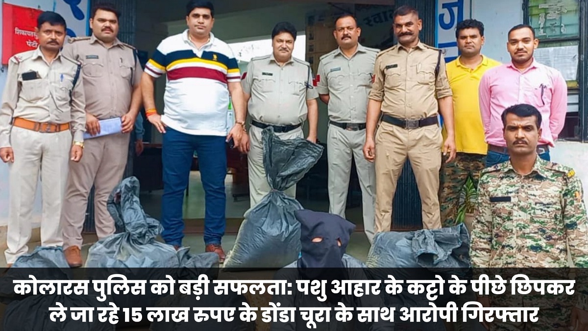 कोलारस पुलिस को बड़ी सफलता: पशु आहार के कट्टो के पीछे छिपकर ले जा रहे 15 लाख रुपए के डोंडा चूरा के साथ आरोपी गिरफ्तार