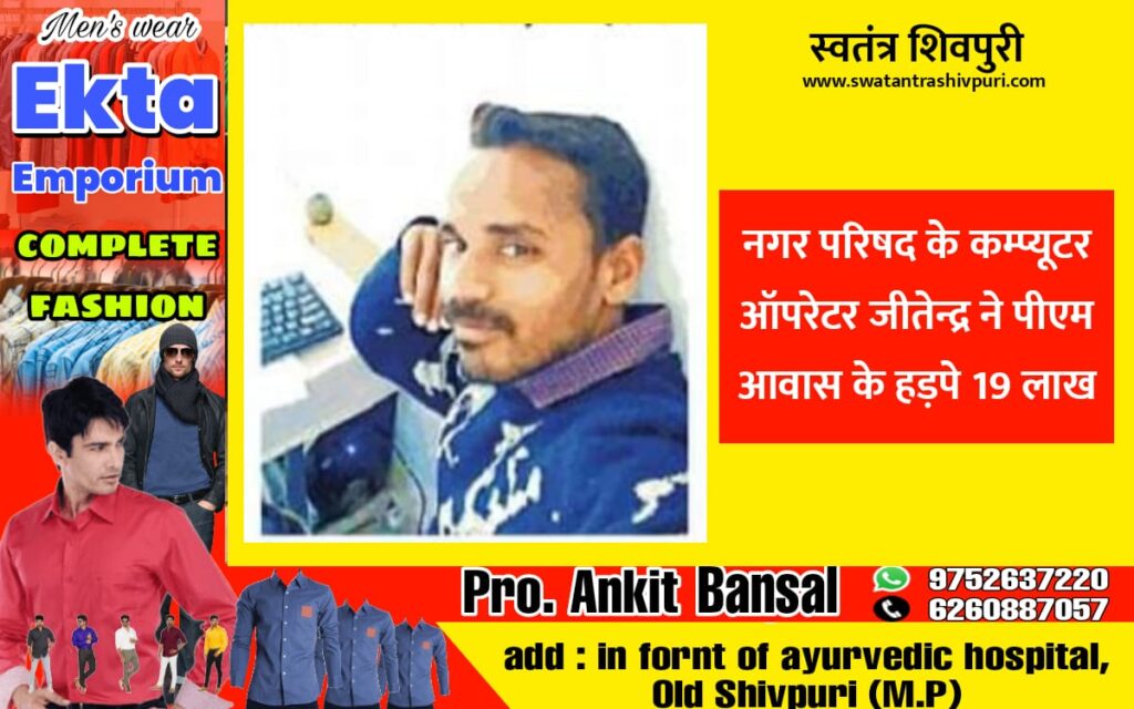 नगर परिषद के कम्प्यूटर ऑपरेटर जीतेन्द्र ने PM आवास के 19 लाख हड़प लिए,FIR की तैयारी