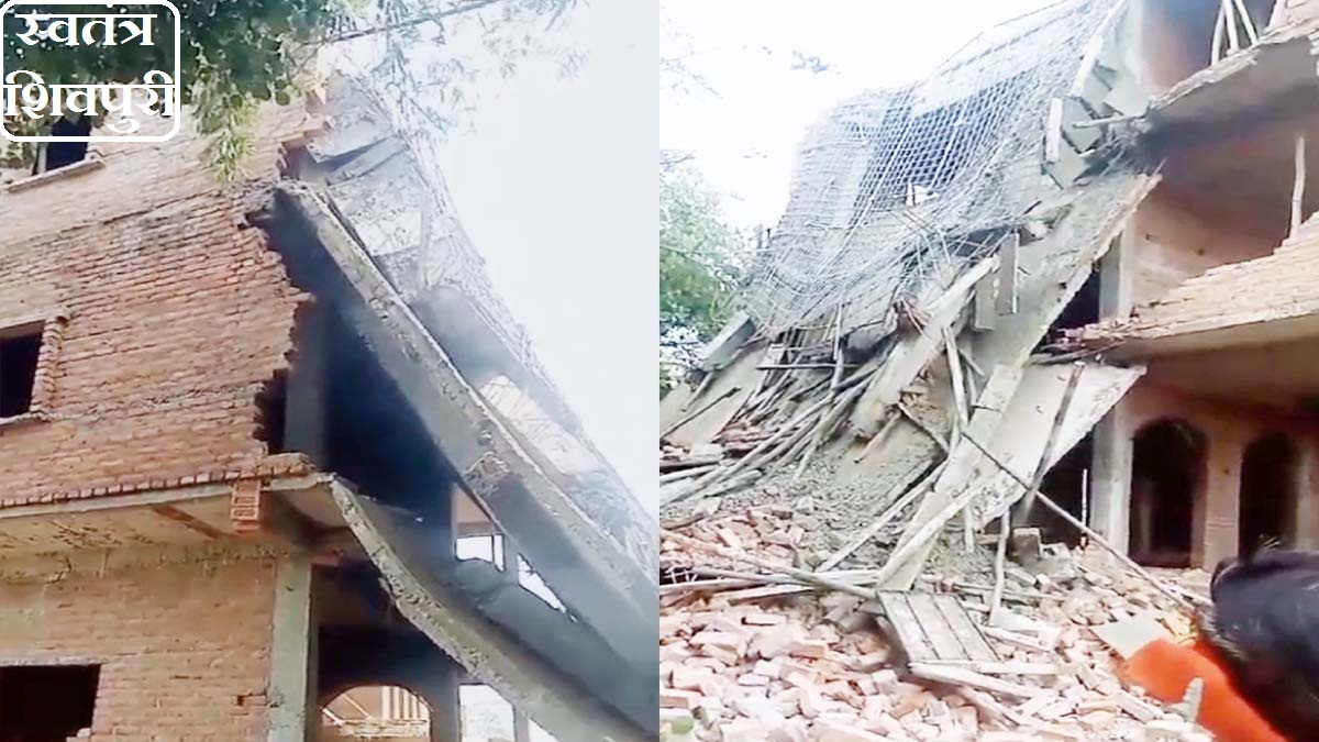 शिवपुरी। खबर शहर के फतेहपुर क्षेत्र से आ रही है। जहां आज एक निर्माणाधीन प्रायवेट स्कूल की बिल्डिंग में बडा हादसा हुआ है। यह पूरी बिल्डिंग भरभराकर गिर गई। गनीमत रही कि जो हिस्सा गिरा है उस हिस्से में मजदूर नहीं थे बरना बडा हादसा तय था। यह फोटो इस हादसे की भयावयता बयां कर सकते है कि आखिर अगर इसके नीचे कोई मजदूर आ जाता तो क्या हालात निर्मित होते।