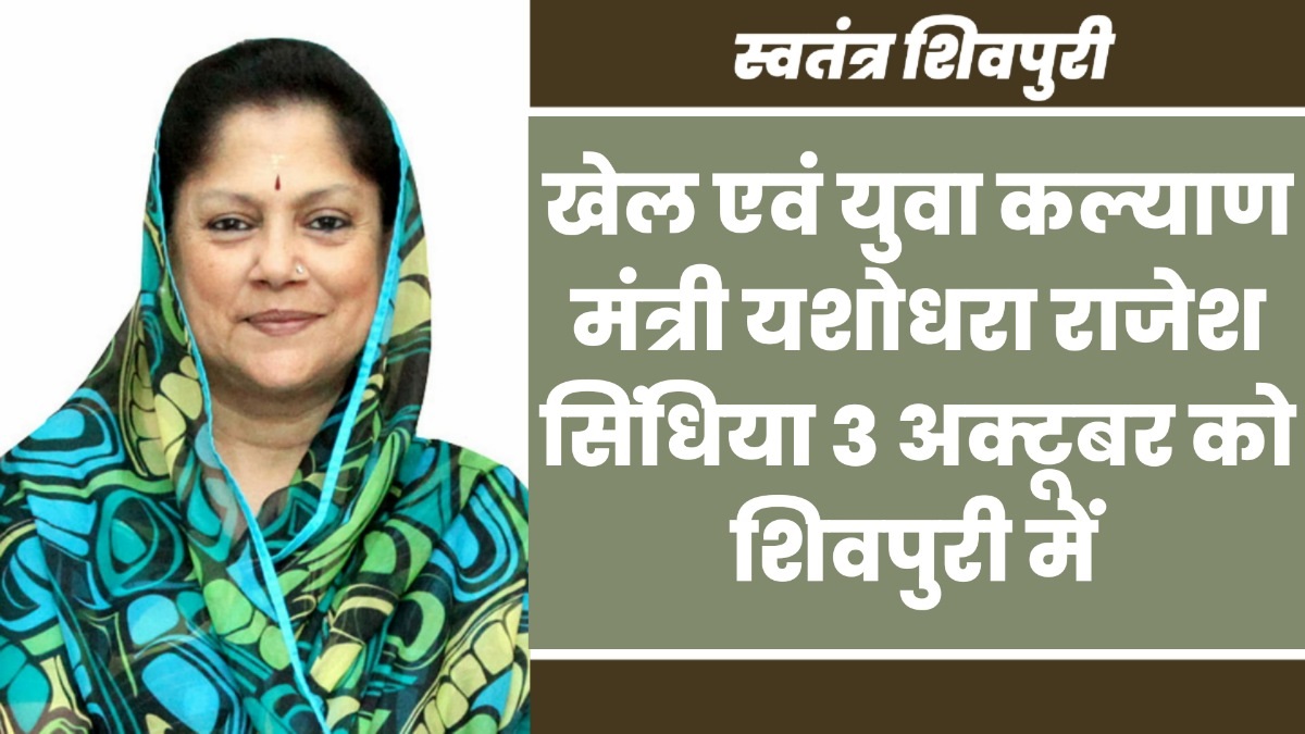 खेल एवं युवा कल्याण, मंत्री यशोधरा राजे सिंधिया 3 अक्टूबर को शिवपुरी में