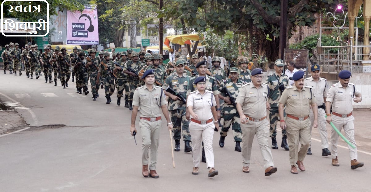 BSF ने पुलिस के साथ मिलकर निकला शिवपुरी में फ्लैग मार्च: अब विधानसभा चुनाव तक शिवपुरी मे रहेगा यूनिट का डेरा