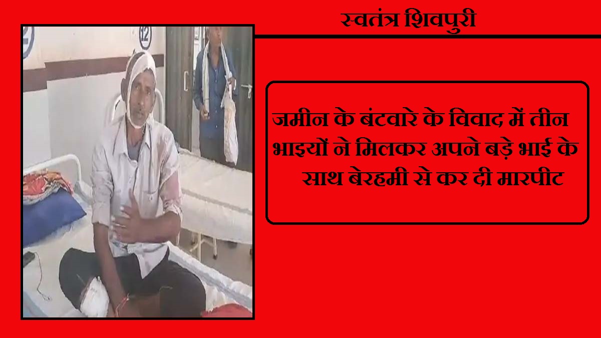 जमीन के बंटवारे के विवाद में तीन भाइयों ने मिलकर अपने बड़े भाई के साथ बेरहमी से कर दी मारपीट