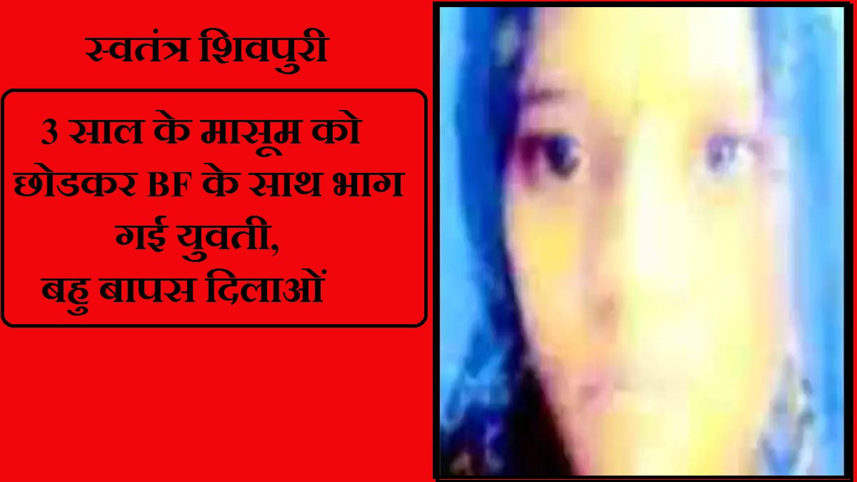 SHIVPURI NEWS 3 साल के मासूम को छोडकर BF के साथ भाग गई युवती,बहु बापस दिलाओं Posted on अक्टूबर 18, 2023अक्टूबर 18, 2023 by swatantra shivpuri Advertisement