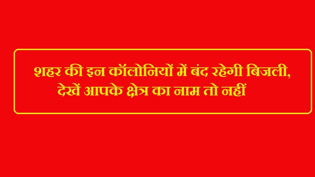 शहर की इन कॉलोनियोें में बंद रहेगी बिजली,देखें आपके क्षेत्र का नाम तो नहीं