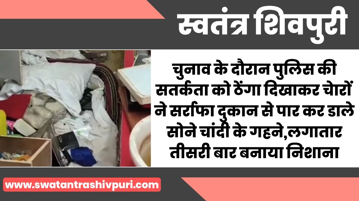 चुनाव के दौरान पुलिस की सर्तकता को ठेंगा दिखकर चेारों ने सर्राफा दुकान से पार कर डाले सोने चांदी के गहने,लगातार तीसरी बार बनाया निशाना