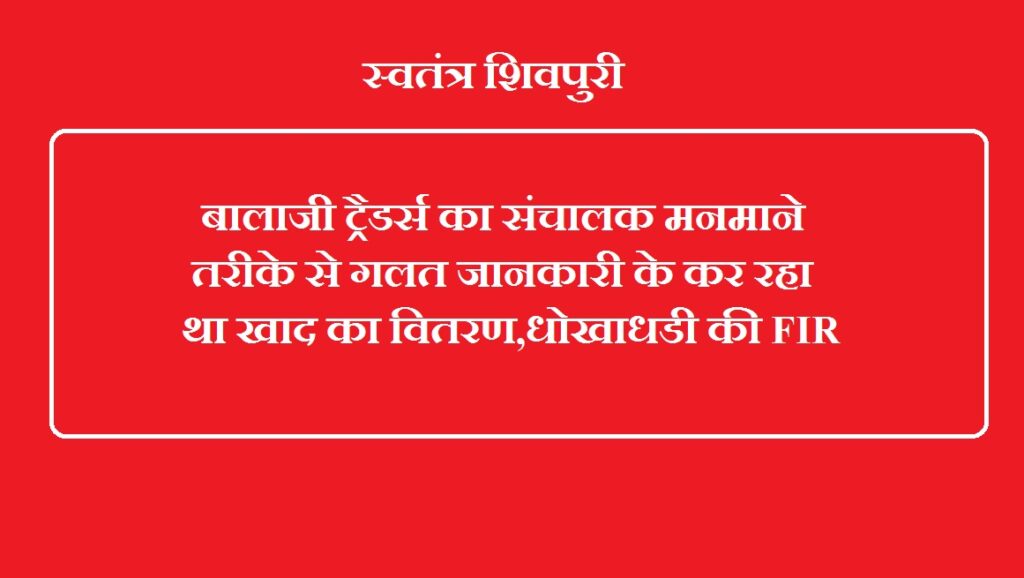 शिवपुरी। बालाजी ट्रैडर्स दिनारा प्रोपराइटर गजेंद्र गुप्ता द्वारा उपभोक्ताओं को दिए गए उर्वरक को क्षमता से अधिक वितरण किए जाने तथा धोखाधड़ी करने पर संचालक गजेन्द्र गुप्ता के विरुद्ध एफआईआर दर्ज करने की कार्यवाही की गई है।