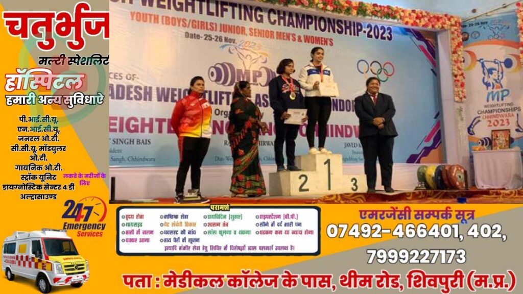 शिवपुरी। शिवपुरी जिले की गोल्डन गर्ल मुस्कान ने अब मध्यप्रदेश के छिंदवाडा में अपना दम दिखाया है। मुस्कान शेख ने ने 64 किलोग्राम बॉडी वेट में पार्टिसिपेट करते हुए 63 किलो स्नैच एवं 70 किलो क्लीन एंड जर्क लगाकर जूनियर वर्ग में मध्य प्रदेश में प्रथम स्थान प्राप्त करते हुए गोल्ड मेडल जीता एवं सीनियर वर्ग में भी पार्टिसिपेट किया और मध्य प्रदेश में दूसरे स्थान प्राप्त किया एवं सिल्वर मेडल हासिल किया।