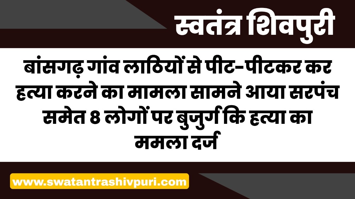 करैरा। खबर जिले के करैरा थाना क्षेत्र से आ रही है जहां एक बुजुर्ग की लाठियों से पीट-पीटकर कर हत्या करने का मामला सामने आया है। बुजुर्ग का कसूर केवल इतना था कि उसने गांव के सरपंच को अपने घर के सामने मिट्टी का ढेर लगाने से मना किया था इससे गुस्साए सरपंच ने अपने साथियों के साथ मिलकर बुजुर्ग की लाठियों से पीट-पीटकर निर्मम तरीके से हत्या कर दी। पुलिस ने सरपंच समेत 8 लोगों के खिलाफ हत्या का केस दर्ज कर जांच शुरू कर दी है।
