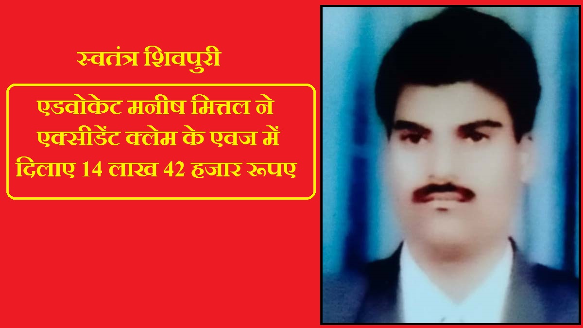 एडवोकेट मनीष मित्तल ने एक्सीडेंट क्लेम के एवज में दिलाए 14 लाख 42 हजार रूपए