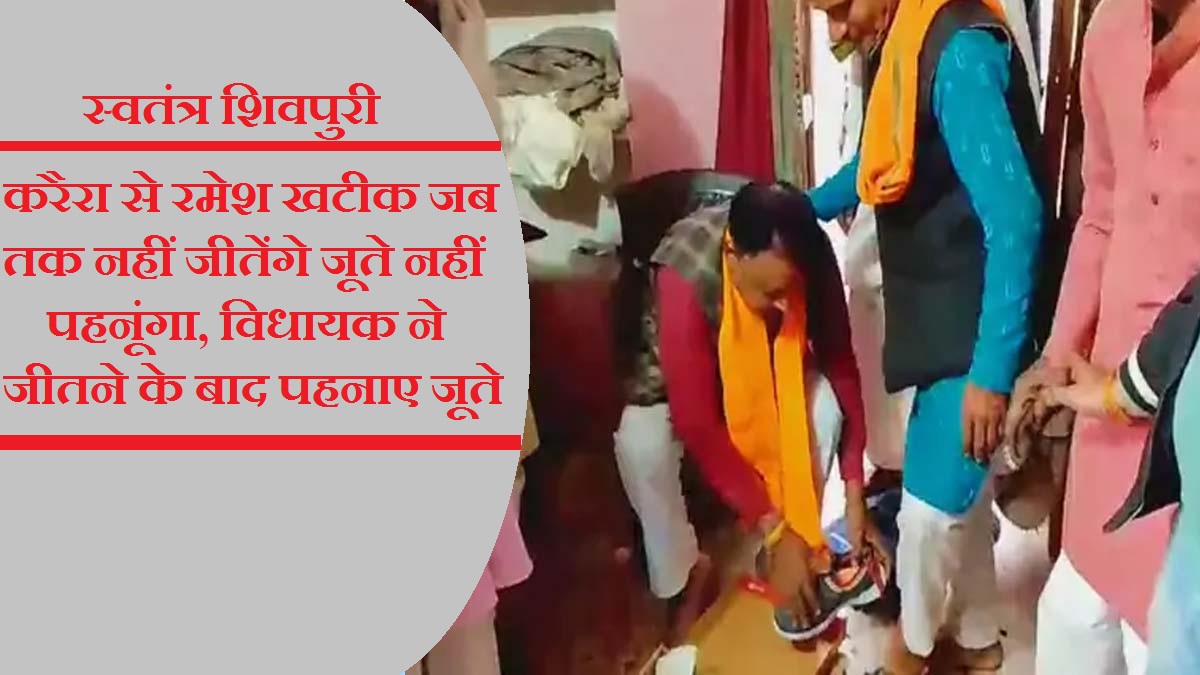 करैरा से रमेश खटीक जब तक नहीं जीतेंगे जूते नहीं पहनूंगा, विधायक ने जीतने के बाद पहनाए जूते- KARERA NEWS
