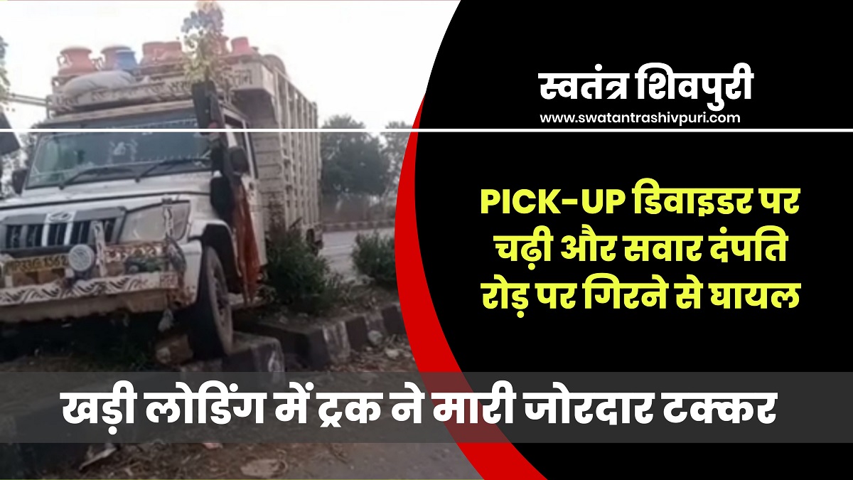 खड़ी लोडिंग में ट्रक ने मारी जोरदार टक्कर: पिकअप डिवाईडर पर चढ़ी और सवार दंपति रोड़ पर गिरने से घायल